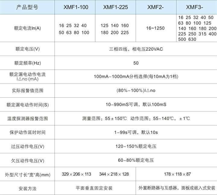 XMF系列主要技術參數