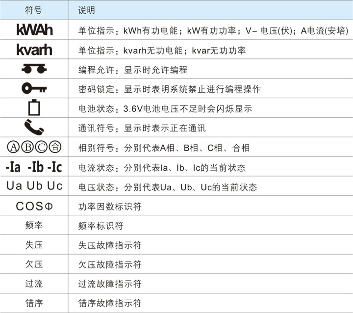 液晶顯示符號說明