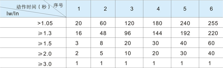 過流反時限故障延時動作時間表: