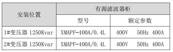 2.1 現場電能質量選型和制訂首先,要保證功率因數要達到要求,諧波治理方案要能夠保障主要諧波吸收或抵消目的的實現,要保障諧波治理設備投入使用后系統電路內的諧波量對設備影響較?。黄浯?,系統改進方案要保障裝置自身的安全性。變壓器穩定電流多按照正常30%的設計要求使用有源濾波器可以治理設備的諧波.